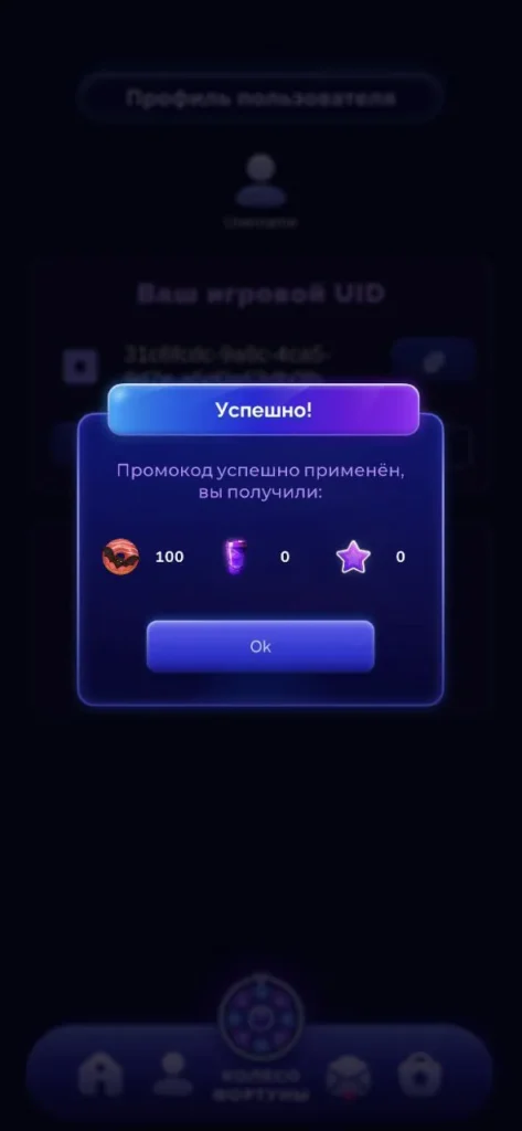 - Под вашим UID найдите поле, в которое введите промокод.